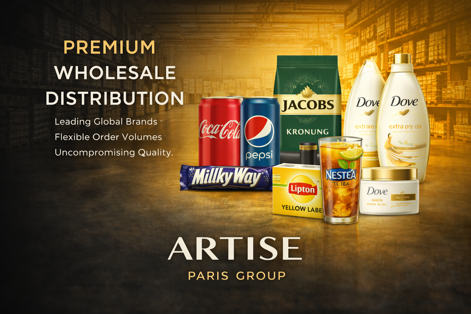 Artise Paris Group supplies a diverse range of food products, from soft drinks and beverages to sweets, coffee, and tea. Through collaboration with well-known corporations, we deliver high-quality wholesale solutions tailored to orders of various scales.